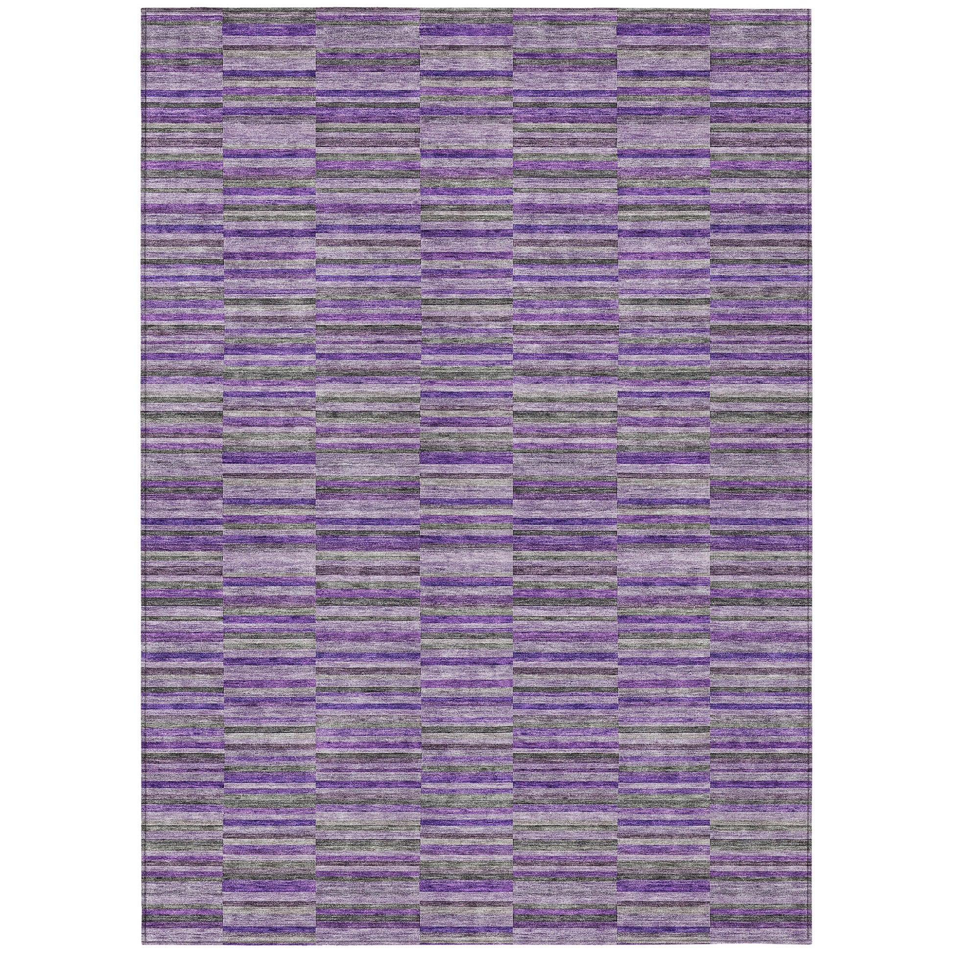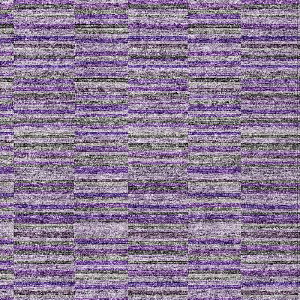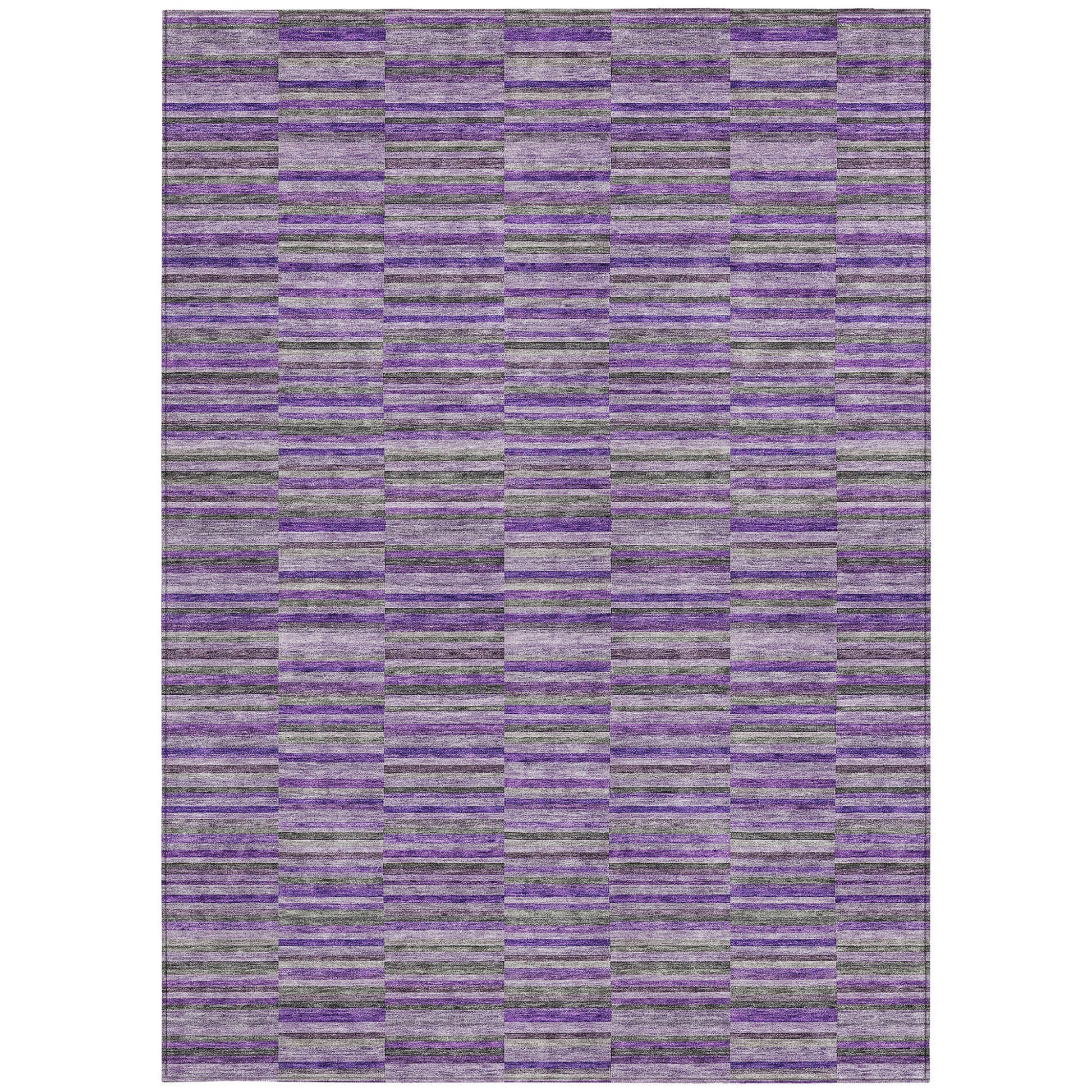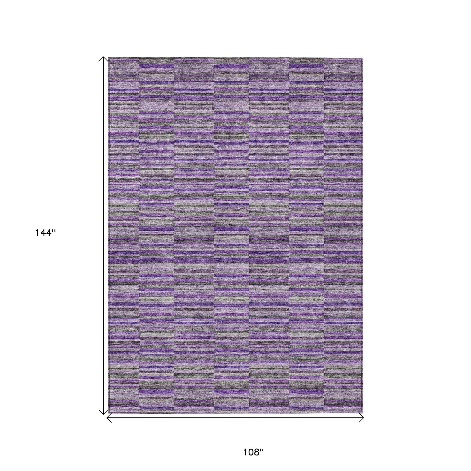9' X 12' Purple And Lavender Striped Washable Indoor Outdoor Area Rug